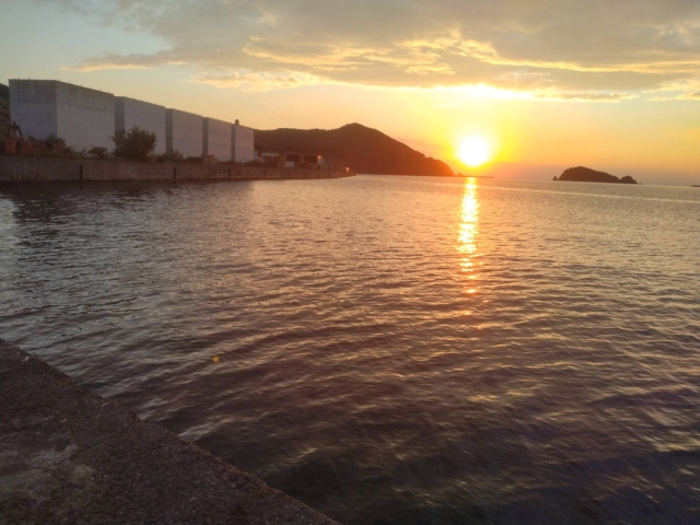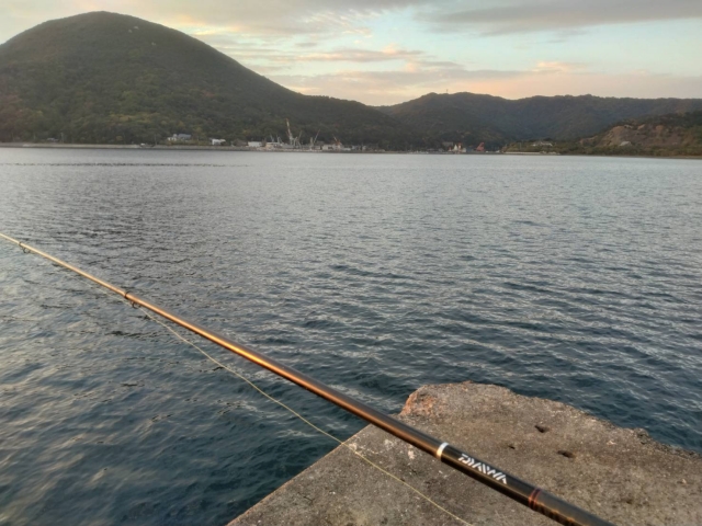 午後4時すぎ現地到着。波止の真ん中あたりではチヌ師が3人、ダンゴ釣りをしており、ほどよく釣れている様子。私は空いていた先端にクーラーを置いて釣り座確保。荷物を台車でまとめて運び、道具を配置して竿を伸ばす。